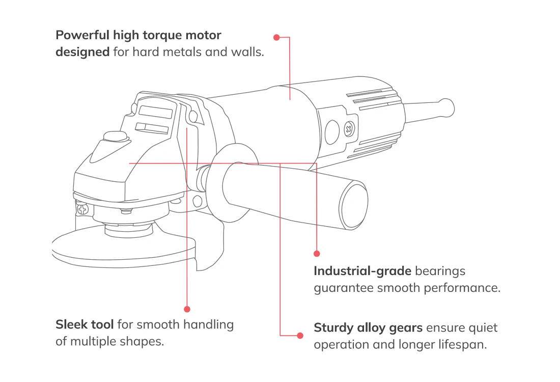 The CUMI CAG 100-850W angle grinder is built for metal grinding, precision cutting, and masonry work on brick and concrete surfaces. Its high-torque motor, industrial-grade bearings, and reinforced alloy gears provide durability, smooth operation, and superior performance.