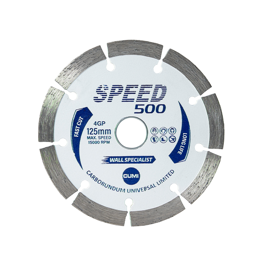 The heat-treated steel core ensures excellent balance and reduced vibration, allowing smoother operation and improved safety during prolonged cutting sessions. Its segmented design supports efficient debris removal and cooler cutting, minimizing blade stress and operator fatigue. Compatible with angle grinders and tile cutters, and certified to EN13236 safety standards, the Speed 500 Wall Specialist wall cutting blade is built for dependable, heavy-duty performance on demanding job sites.